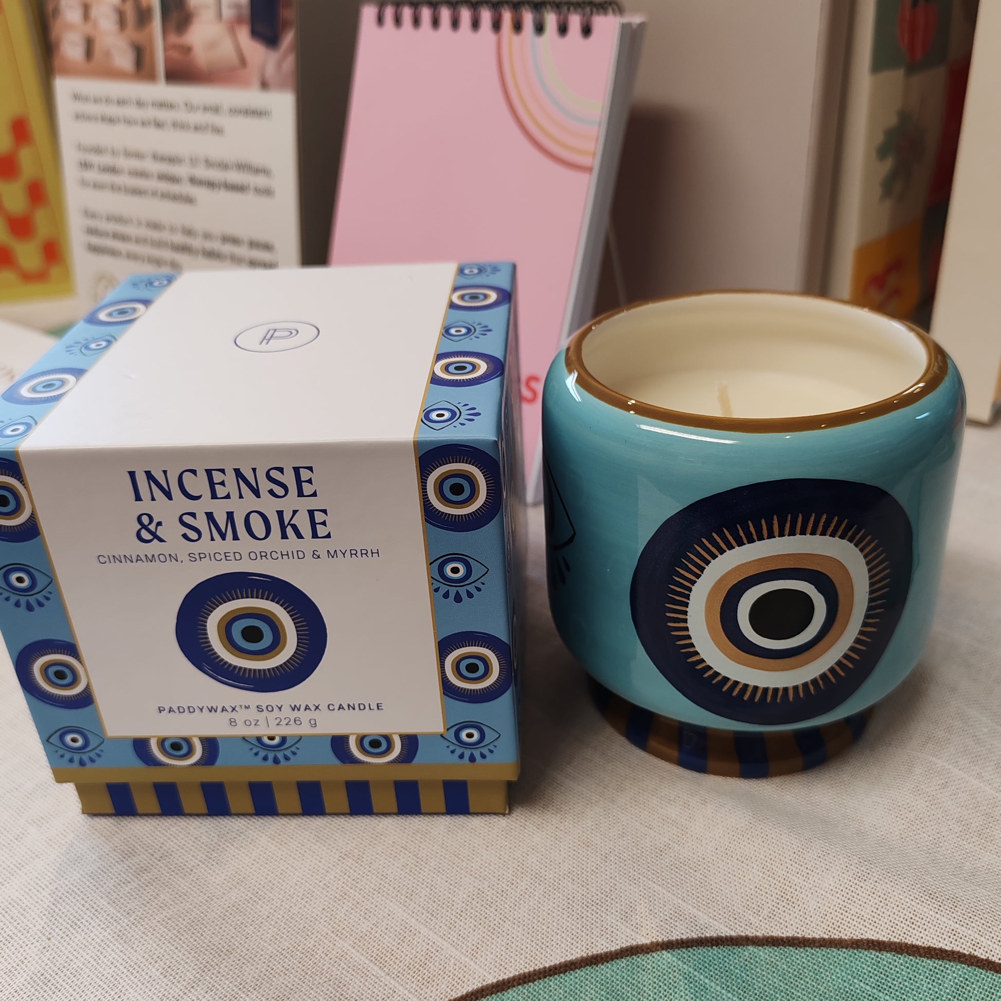 Create a warm and inviting atmosphere with Adopo Eye Ceramic Pot Candle. Made with eco-friendly soy and housed in a reusable ceramic pot, this candle not only provides a cozy ambiance but also reduces waste. Perfect for gifting, it comes in beautiful packaging.