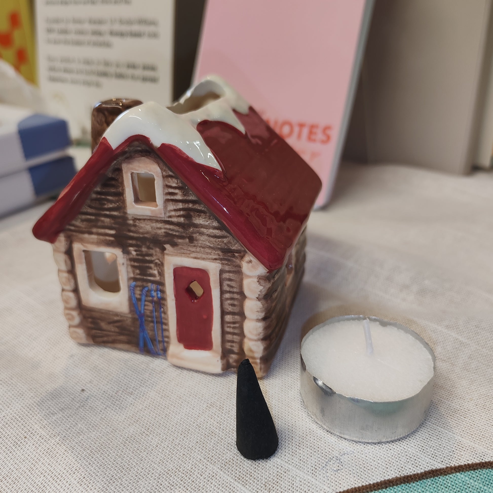 Enhance the ambiance of your space with our Alpine chalet style ceramic incense and tea light holder. Enjoy the calming effects of incense while adding a touch of rustic charm to your decor. Handcrafted with quality ceramic, this holder is the perfect addition to any home.