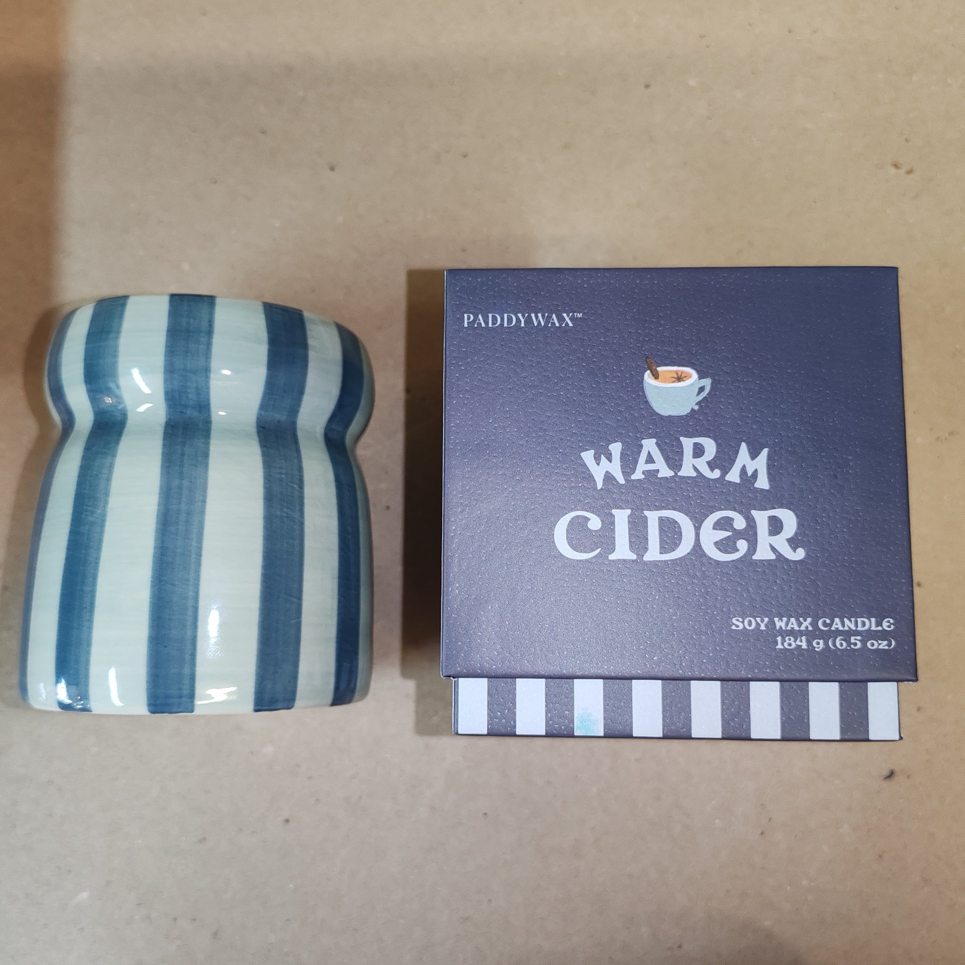 Expertly crafted in a reusable ceramic pot, the Cabana Blue/Navy Striped Ceramic Candle infuses any space with the warm, inviting aroma of cider. Perfect for cozy nights in, this 6.5oz/184g candle will create a relaxing atmosphere while adding a touch of style to your home decor.