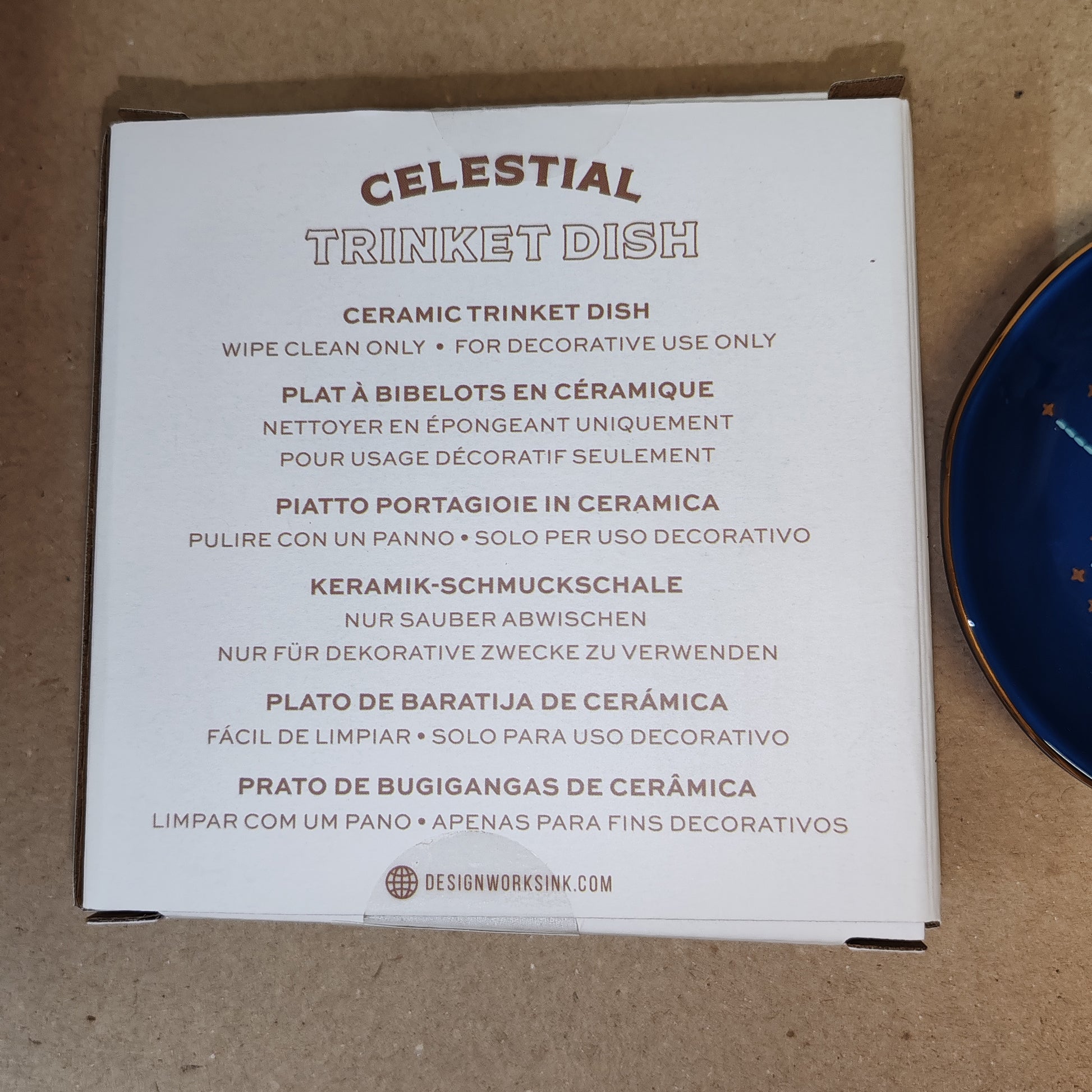 "This Celestial Trinket dish comes packaged in a stunning gift box, making it the perfect present for any occasion. The intricate eye decoration adds a mystical touch to your decor, while providing a practical and elegant way to store your small treasures."