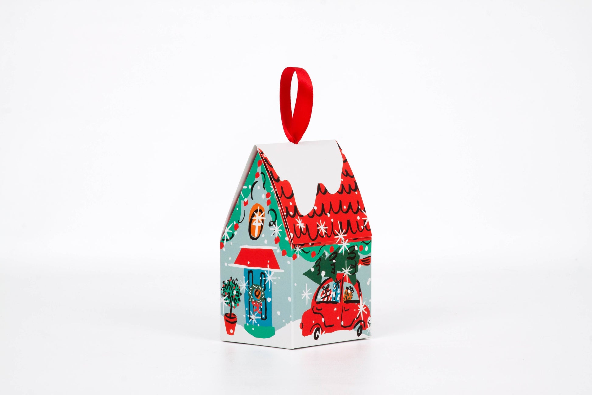 The Christmas Car 130 Piece Puzzle Ornament from Galison is both an ornament to hang on the tree and a mini puzzle. The puzzle features a colorful illustration of a car loaded with presents. The puzzle pieces are boxed in a charming little house ornament decorated for the holiday. Ornament includes red string for hanging. Makes a perfect gift!