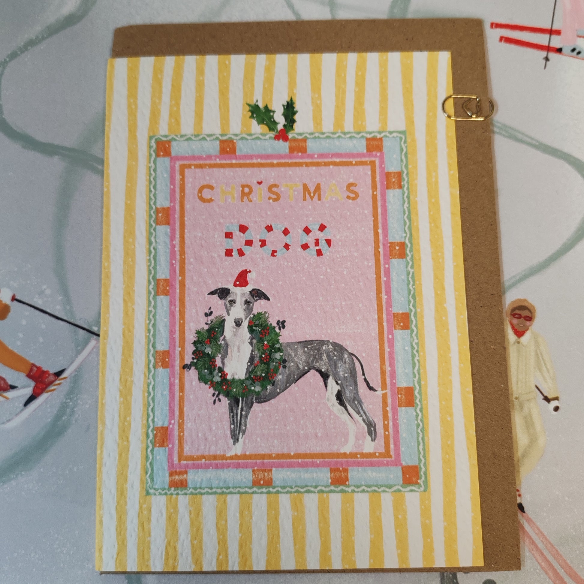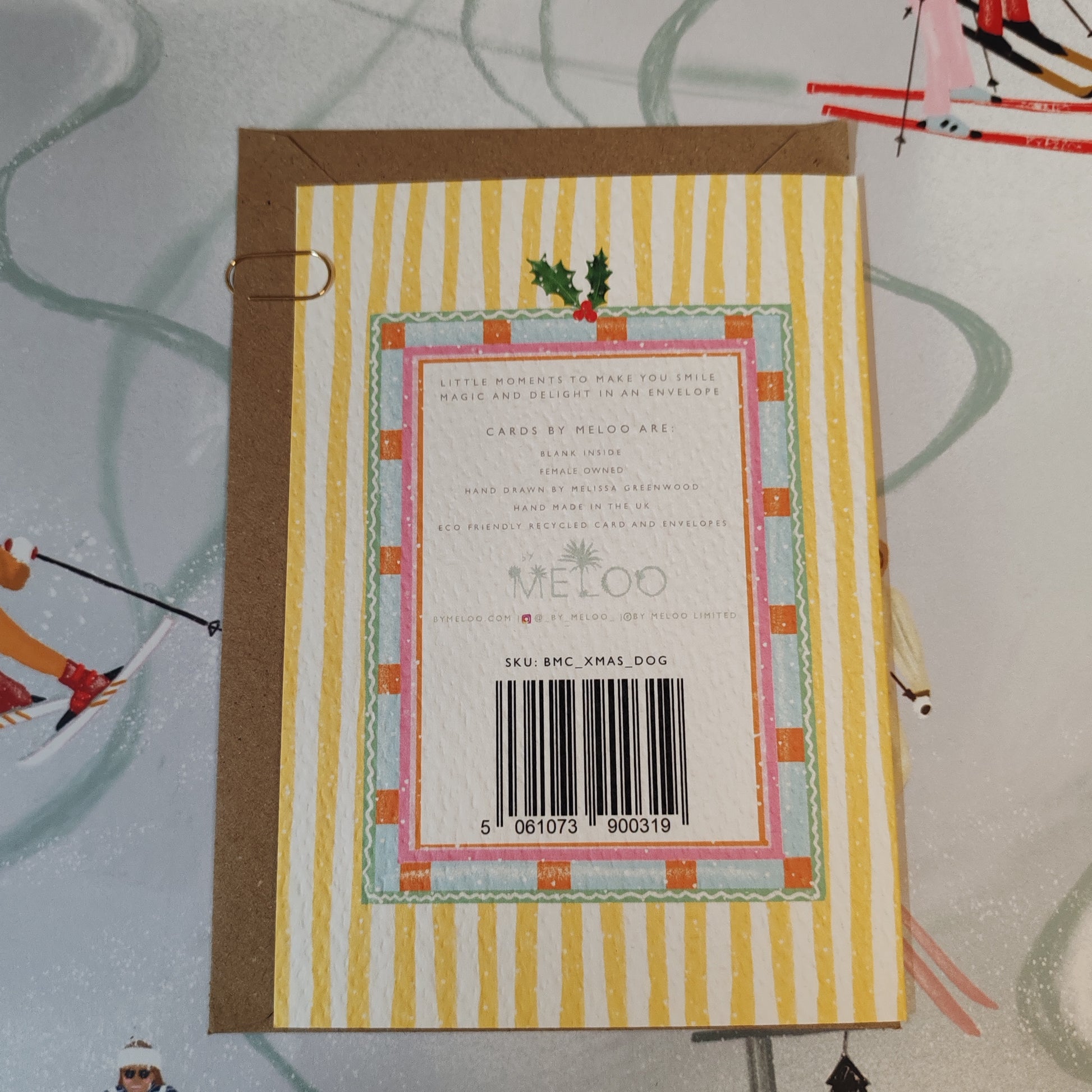 This British illustrator-designed Christmas card features a festive dog, perfect for spreading holiday cheer. Printed by meloo, this card is sure to delight any recipient.