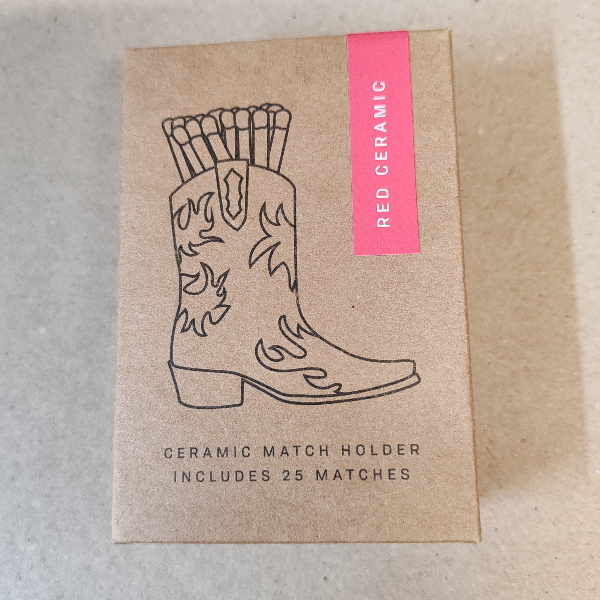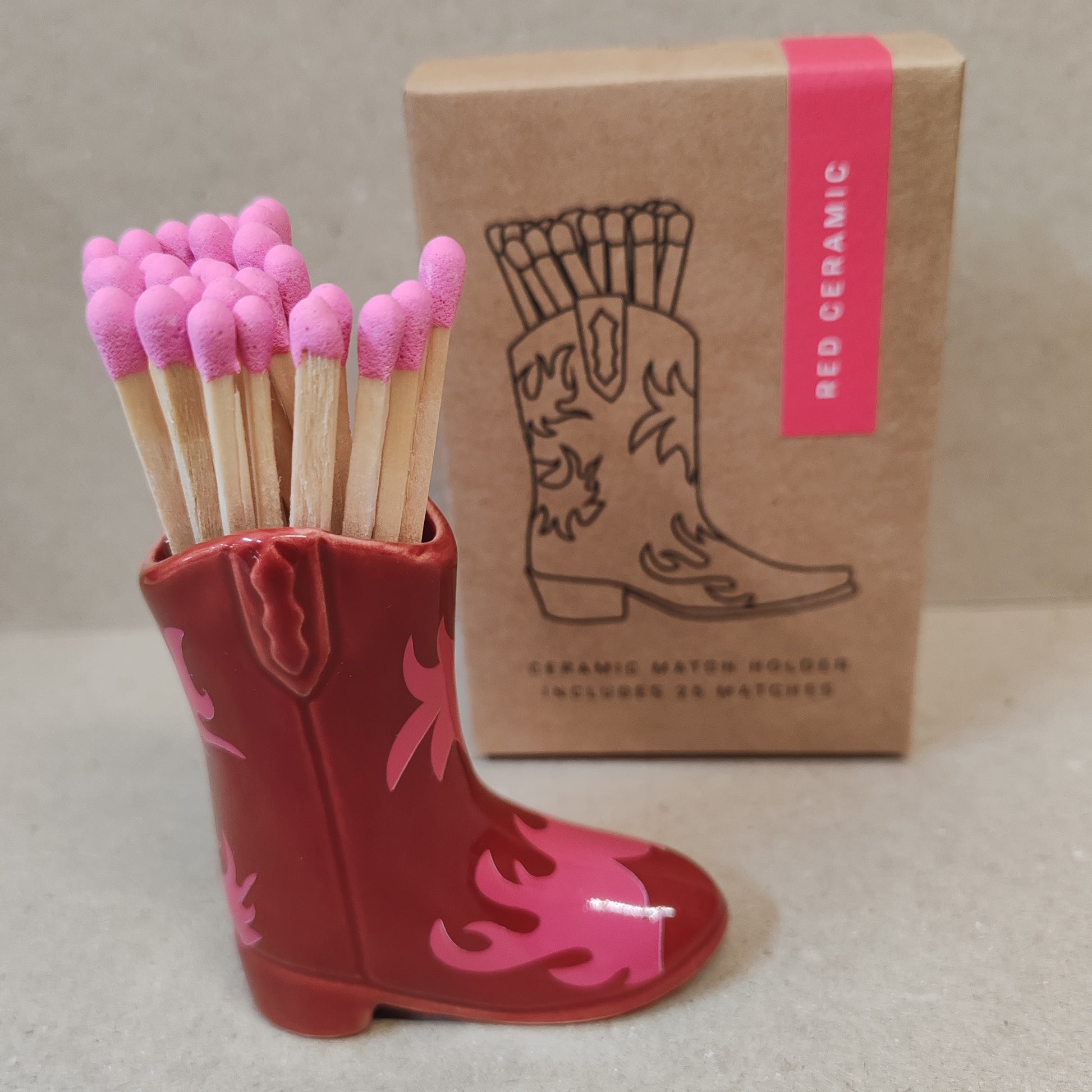 This ceramic cowboy boot matchbox holder is a stylish and functional addition to your home. Its durable material ensures long-lasting use and its unique design adds a touch of western charm. Keep your matches organized and within easy reach with this charming piece.