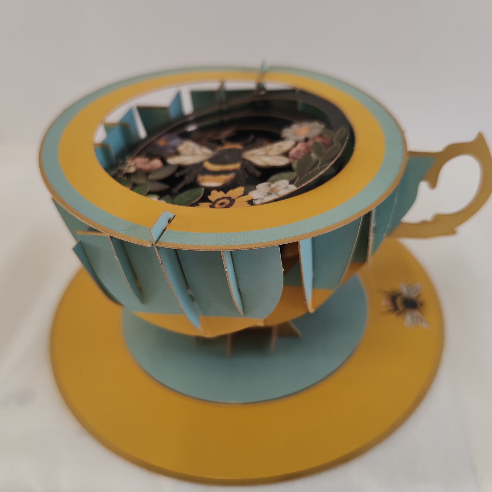 This Cup of Tea pop up greeting card is the perfect display gift for any occasion. Its unique bee theme adds a charming touch to any recipient's day. Expertly crafted, this card is both a thoughtful gift and a beautiful work of art.