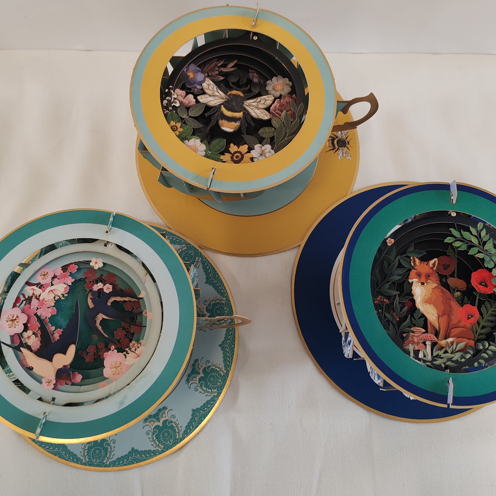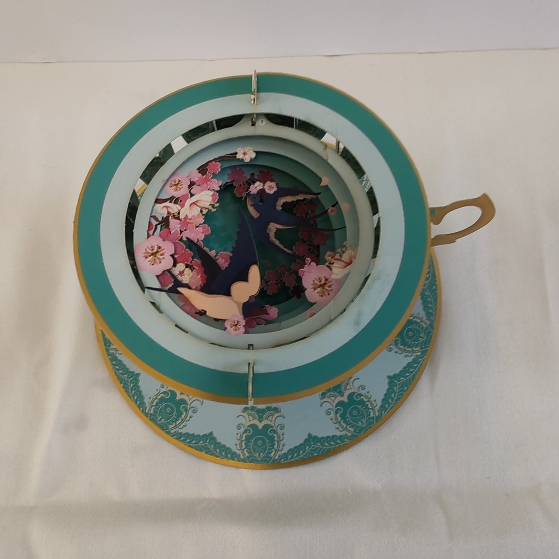 Cup of tea pop up greeting card. Cherry blossom theme.