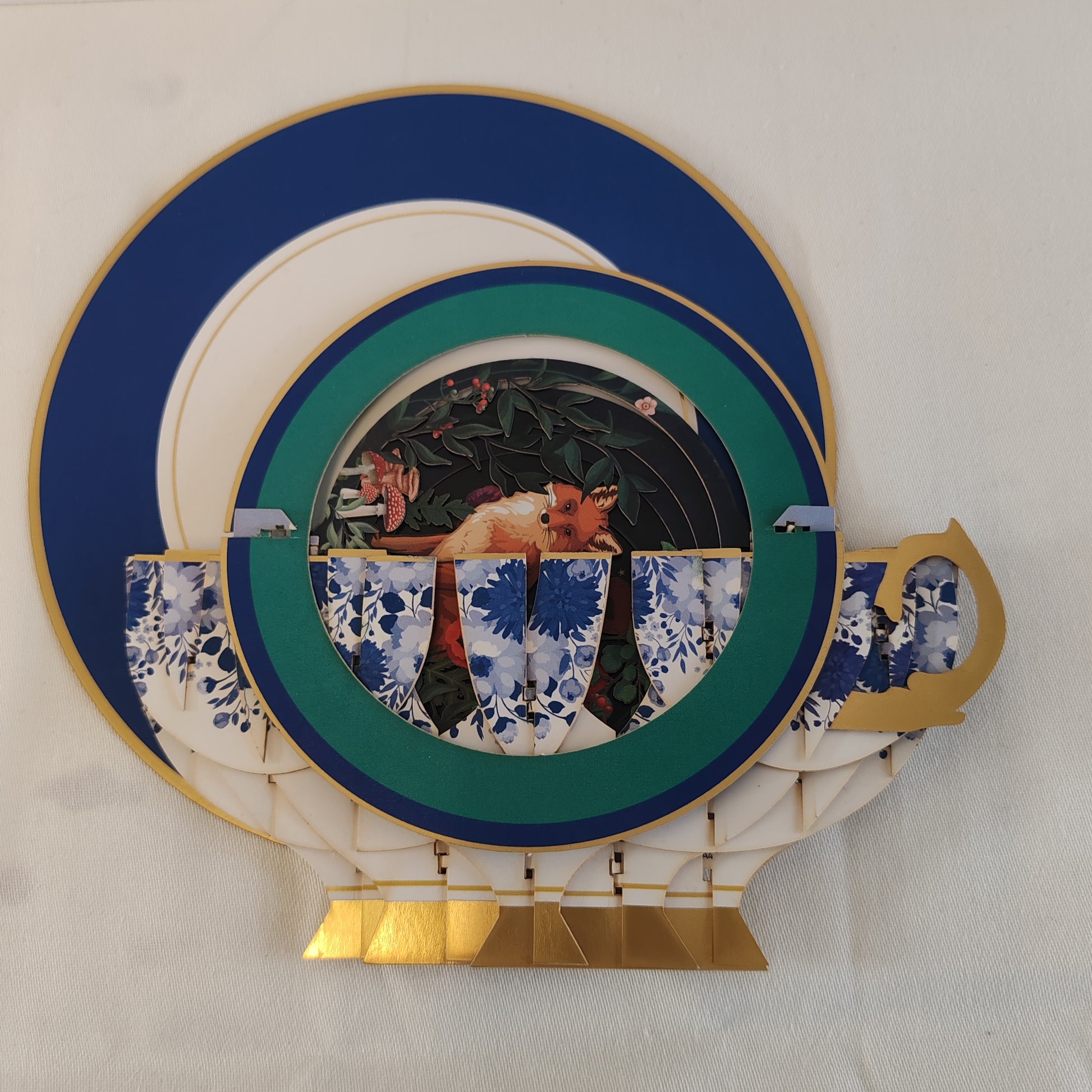 "As an expert in the industry, I can confidently say that our Cup of Tea Pop Up Greeting Card is beautifully designed with intricate details. The fox theme adds a charming touch, making it the perfect choice for any occasion. Add a touch of elegance to your gift with this high-quality card."