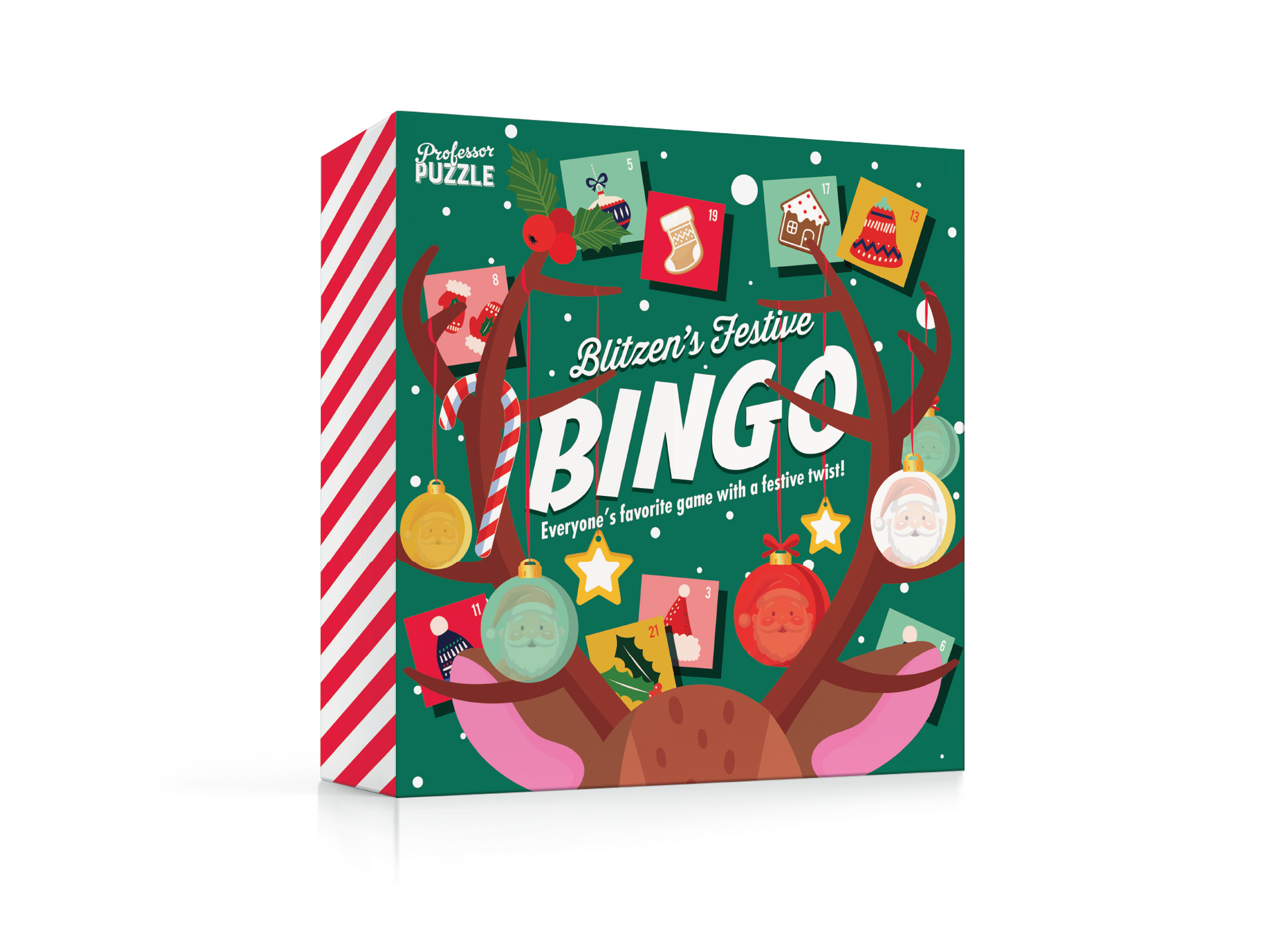 Have a jolly good time with this festive game of chance! Pick the picture tiles out of the sack and see who will be the first to match five Christmassy objects in a row and shout 'Bingo-ho-ho'! Enjoy playing this reindeer game with friends and family all season long.