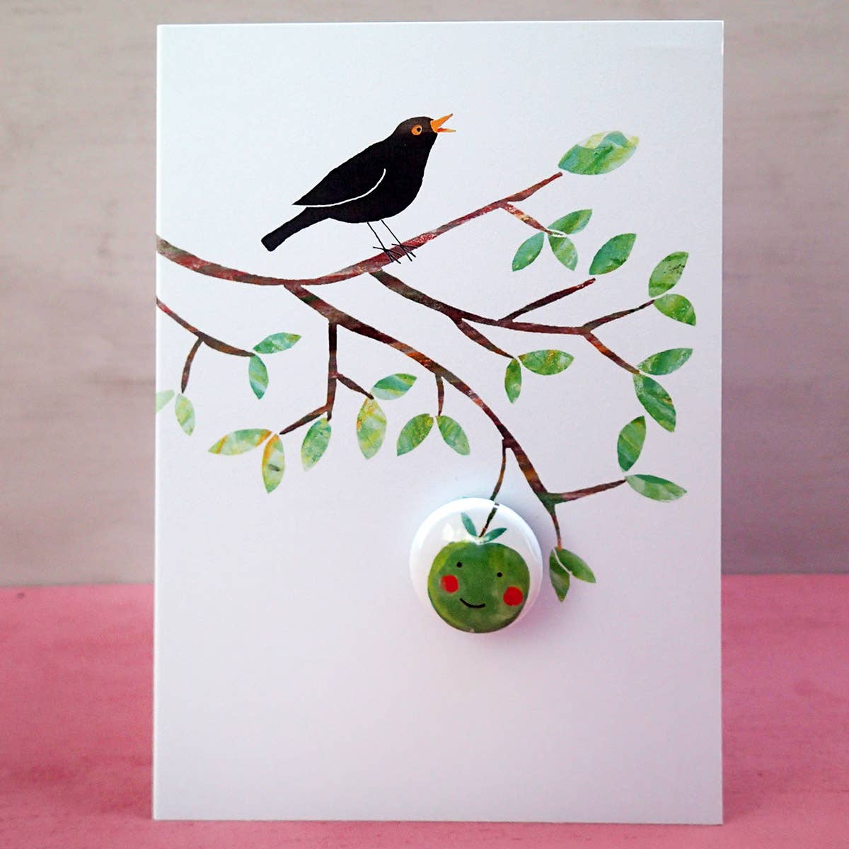 A6 greetings card with 25mm pin badge, with kraft C6 envelope, printed on FSC card & packed in compostable cellophane.