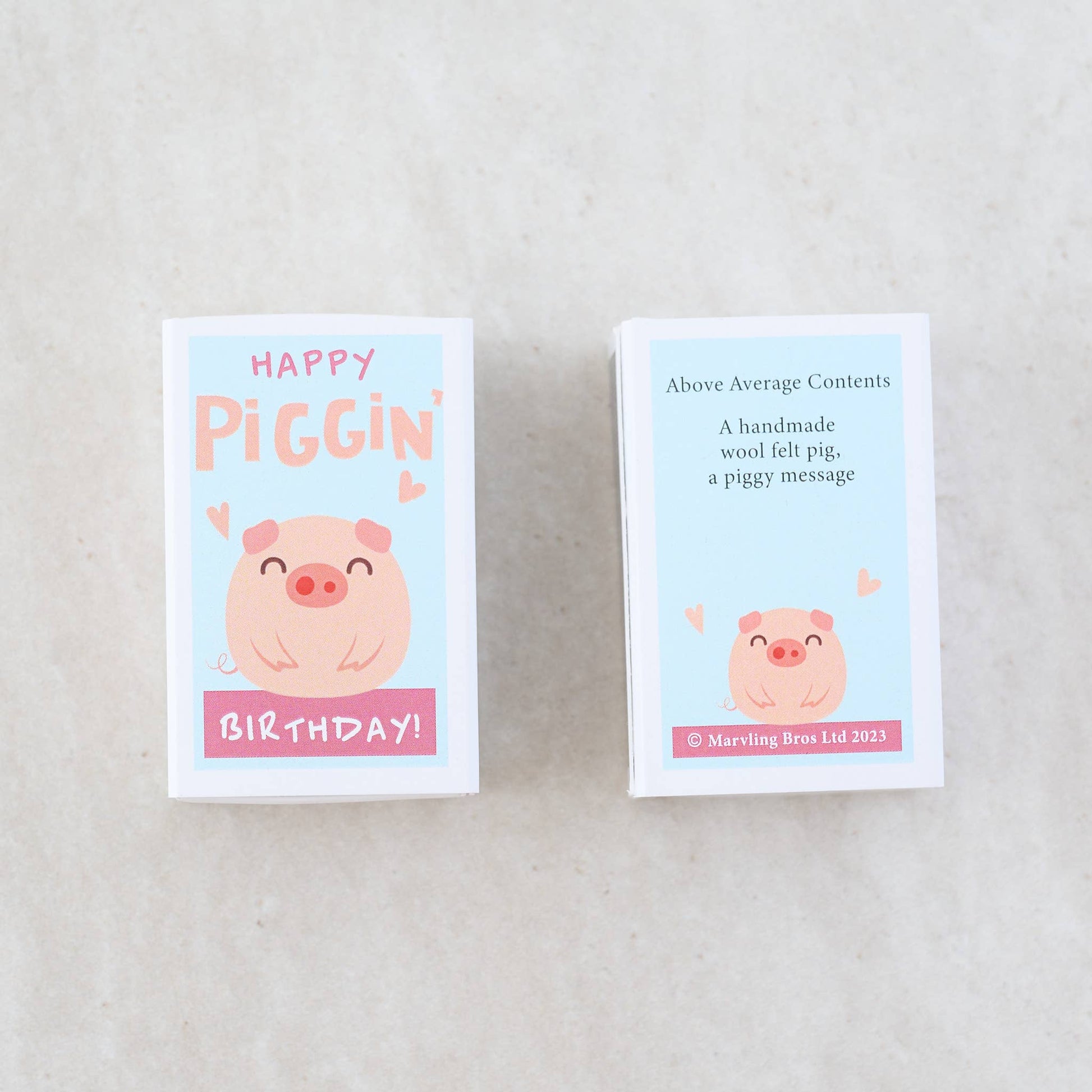 Make their birthday wonderful with our unique "Happy Piggin' Birthday" gift – a meticulously handcrafted wool felt pig, tucked into an enchanting matchbox that's bound to spread joy all around. Decorated with the endearing card message 'Hogs & Kisses!'.