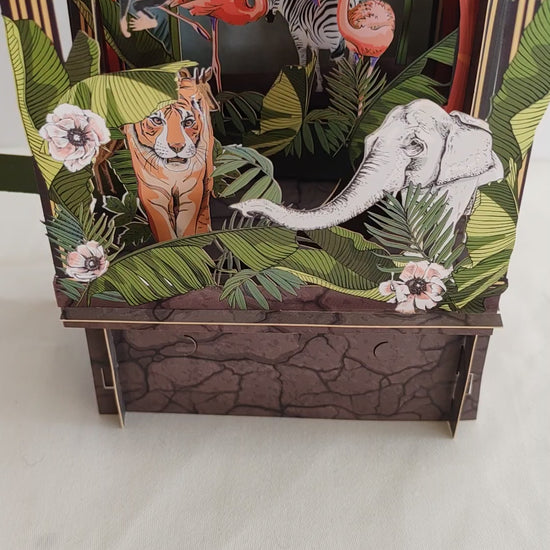 Get ready to take a trip to the jungle with our interactive pop up greeting card! Featuring a paper theatre design, this card brings the magic of the jungle to life before your eyes. Perfect for any occasion - birthdays, anniversaries, or just because! (Impress your friends with your sense of humor (while also sending a thoughtful card)!