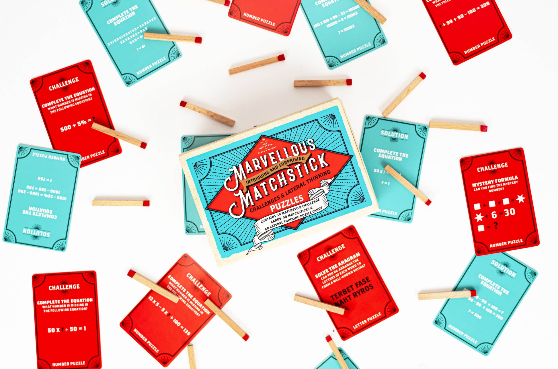 Add a fiery new twist to your brain training with this scorching mix of puzzles and teasers from Professor Puzzle. Use the wooden sticks to try to master the 50 matchstick challenges shown on the cards. Then ignite your curiosity with an eclectic mix of number, word and letter puzzles. Time to prove how much of a bright spark you really are!