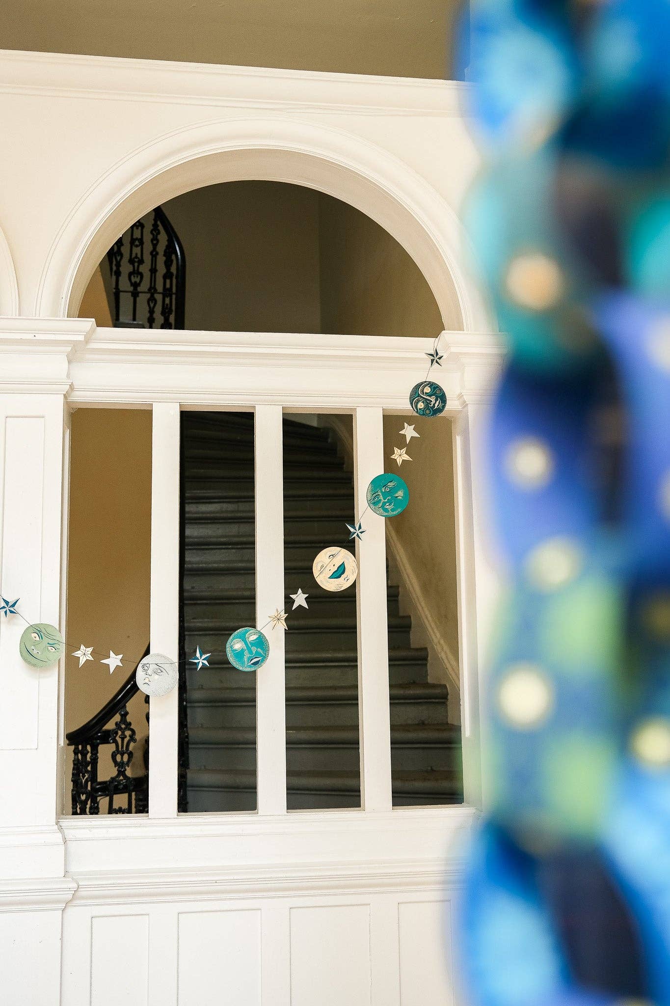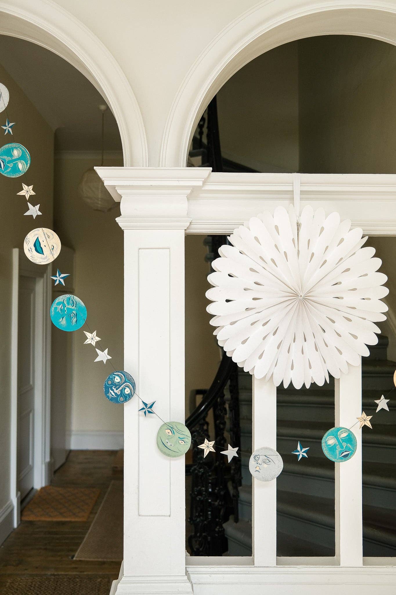 Enchanting moons and shimmering stars cast their magical glow onto the dreamers below. Includes a mix of twenty celestial themed shapes along three metres.