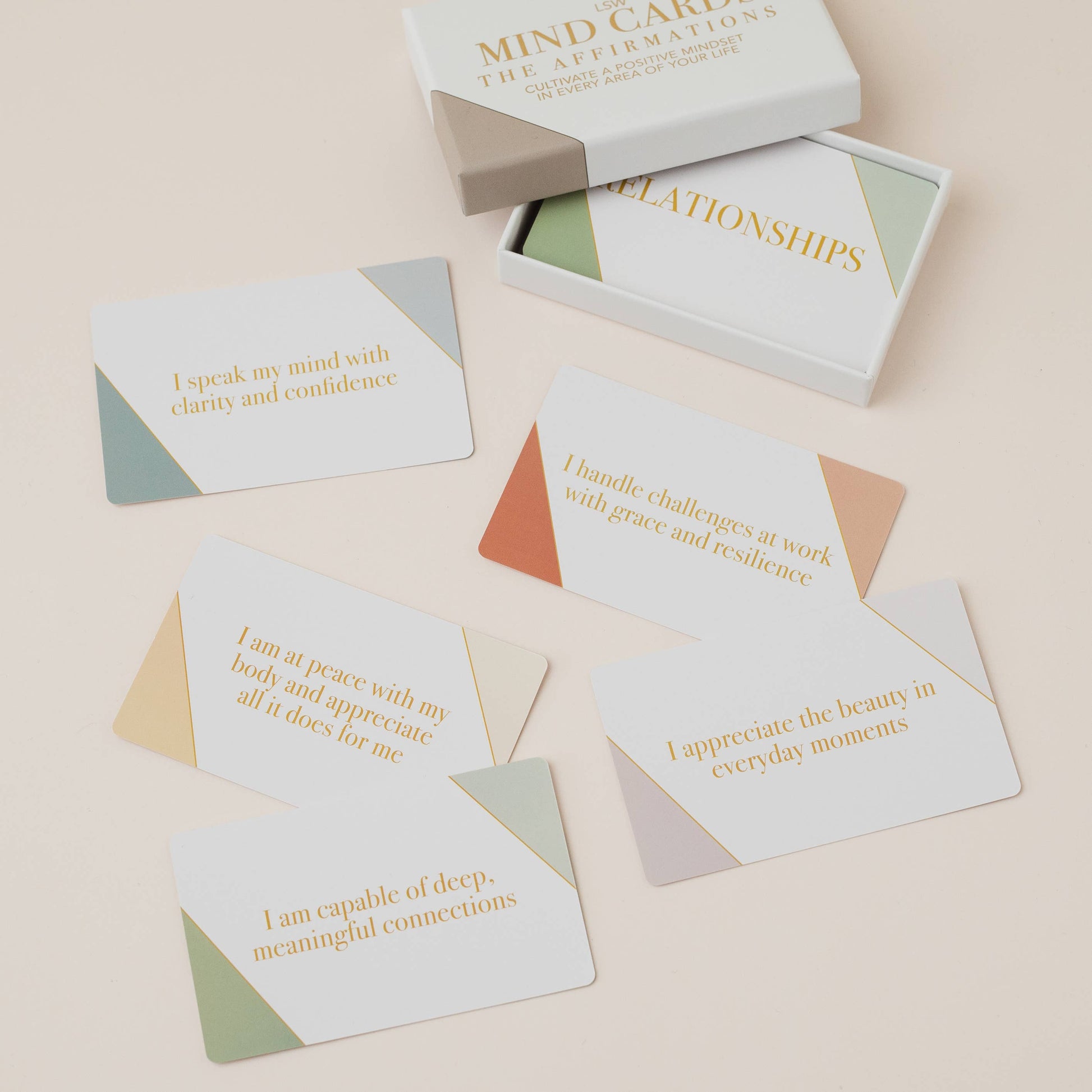 LSW Mind Cards: The Affirmations is a powerful set of 50 affirmation cards across five key areas of life: career, confidence, health, gratitude, and relationships. Each card is designed to boost self-belief and promote a positive mindset—perfect for starting the day with intention.