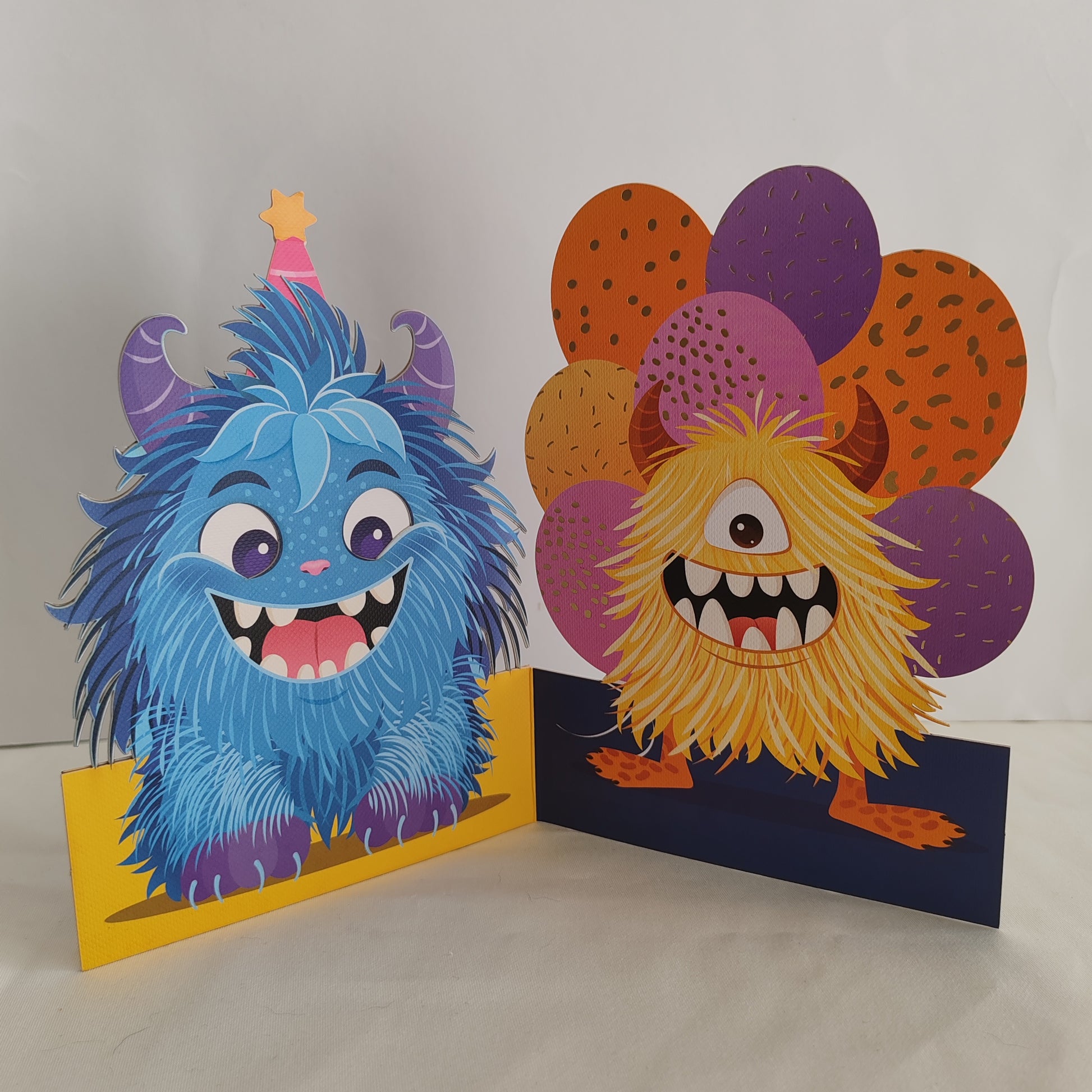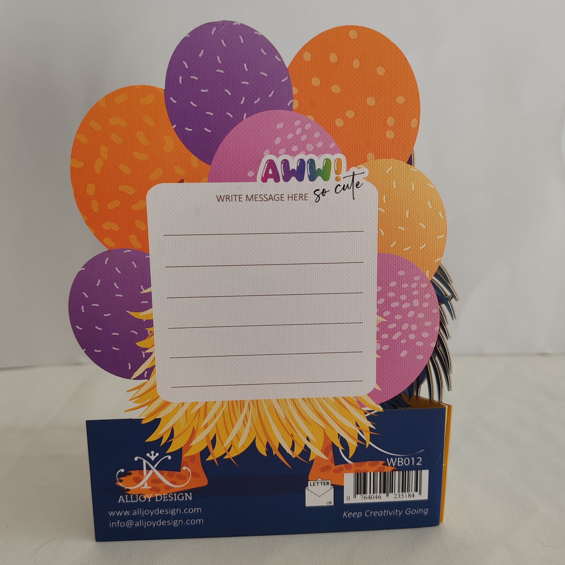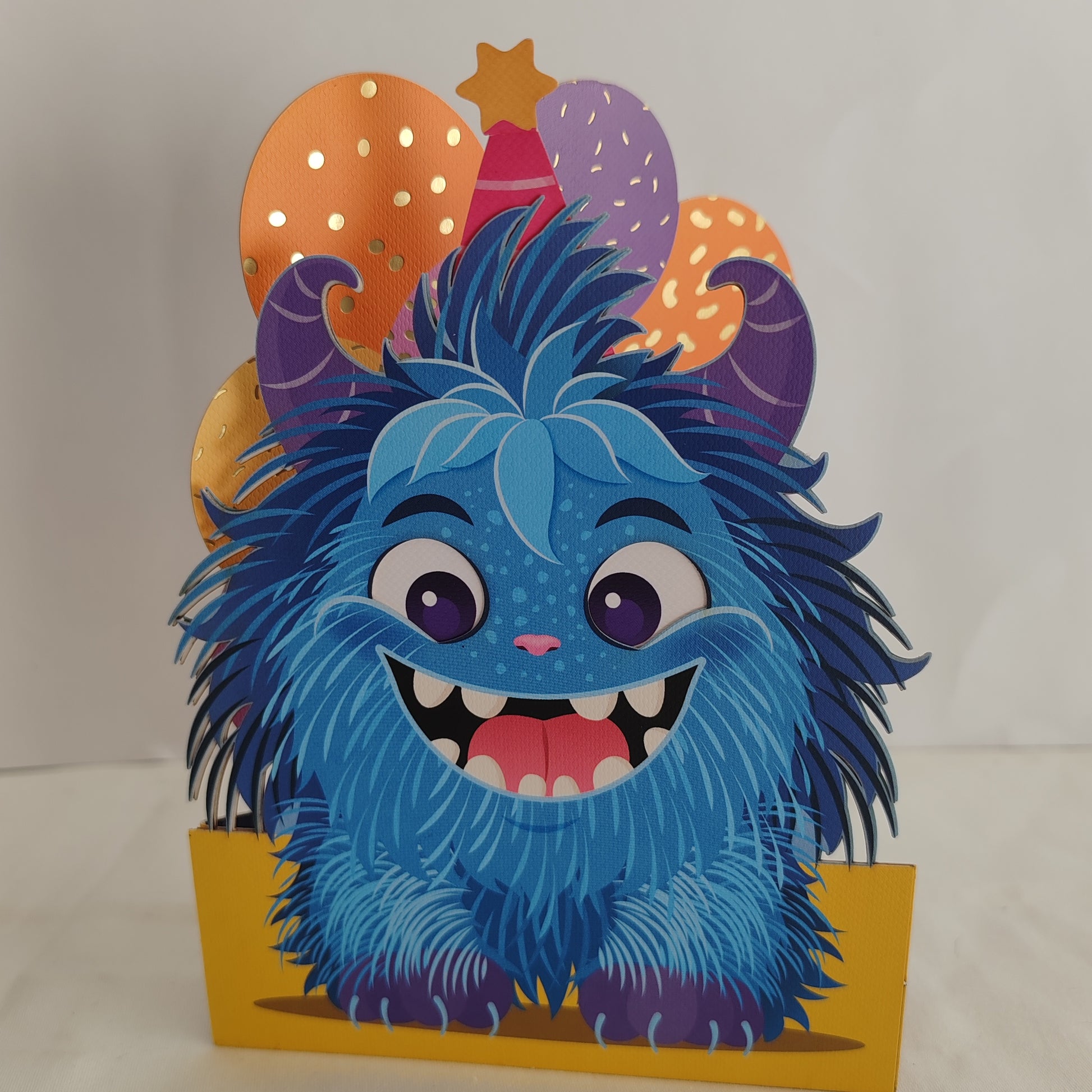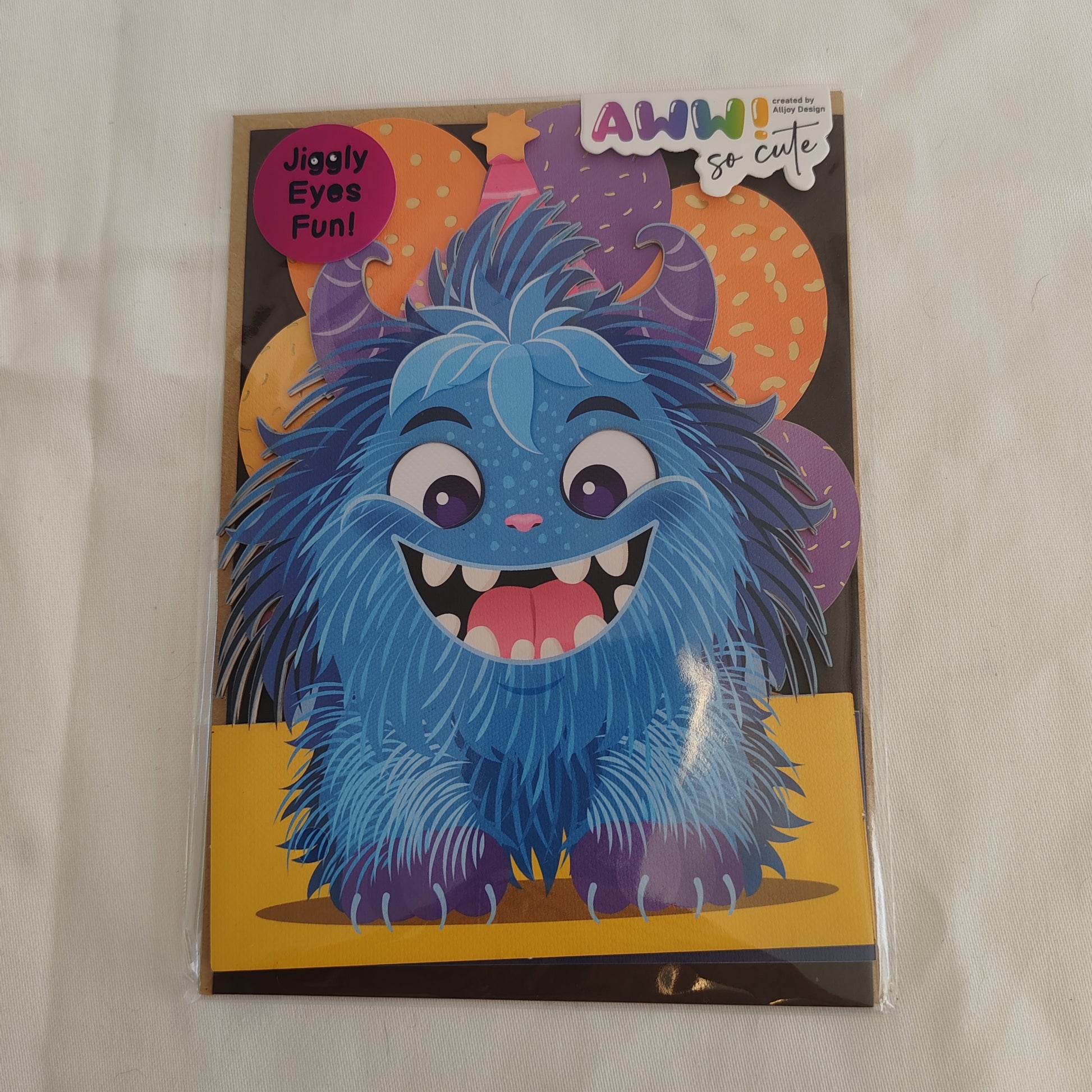 This quirky greeting card features a wobbly-eyed monster to add a touch of fun to your message. Perfect for any occasion, this card is sure to make the recipient smile. (Eye-catching design with a playful twist!)