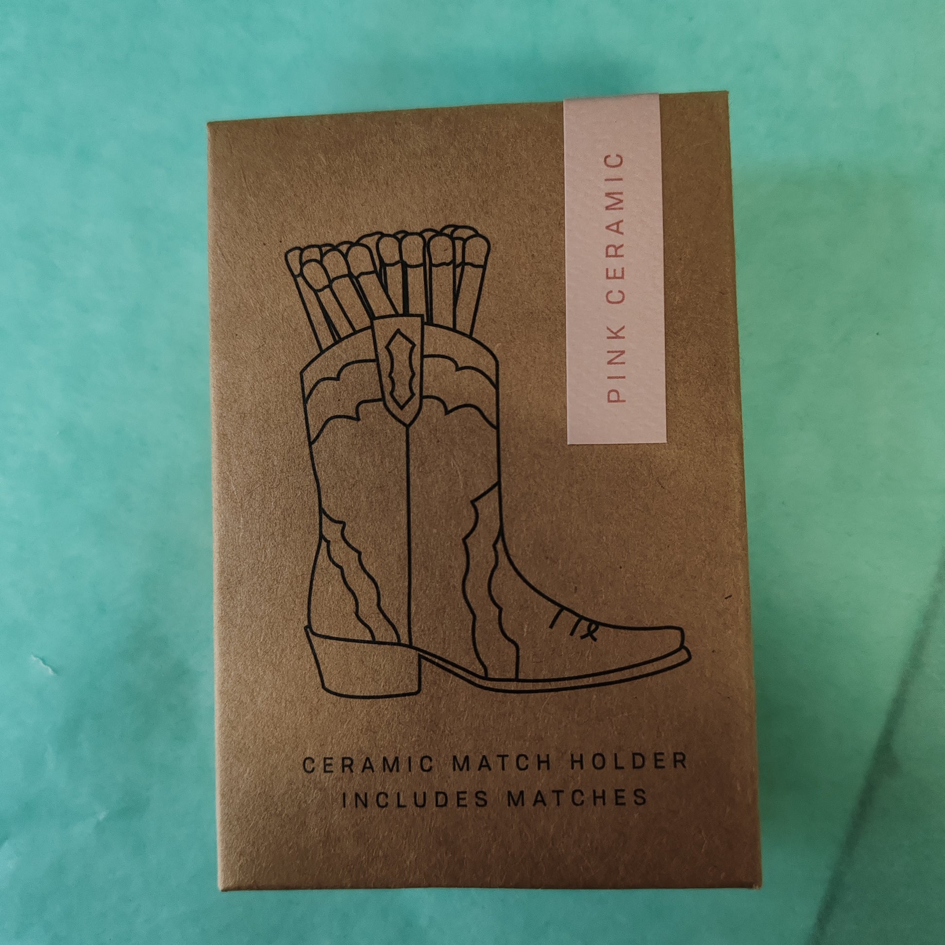 Nashville Ceramic Cowboy Boot Match Holder Pink with Matches 25Pcs