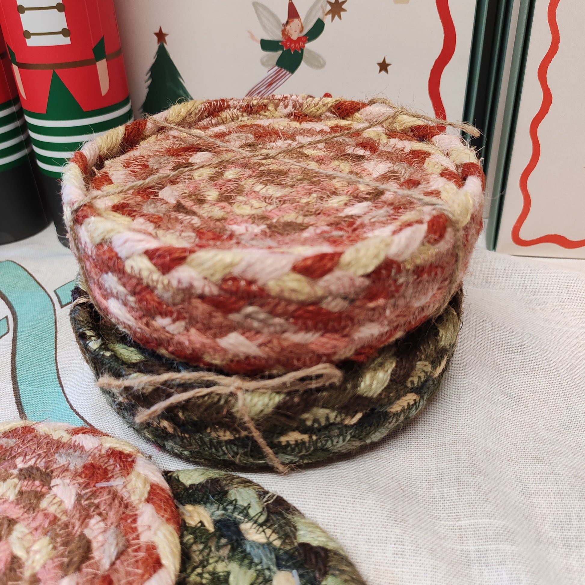 Set of 6 jute coaster colour Hedgerow