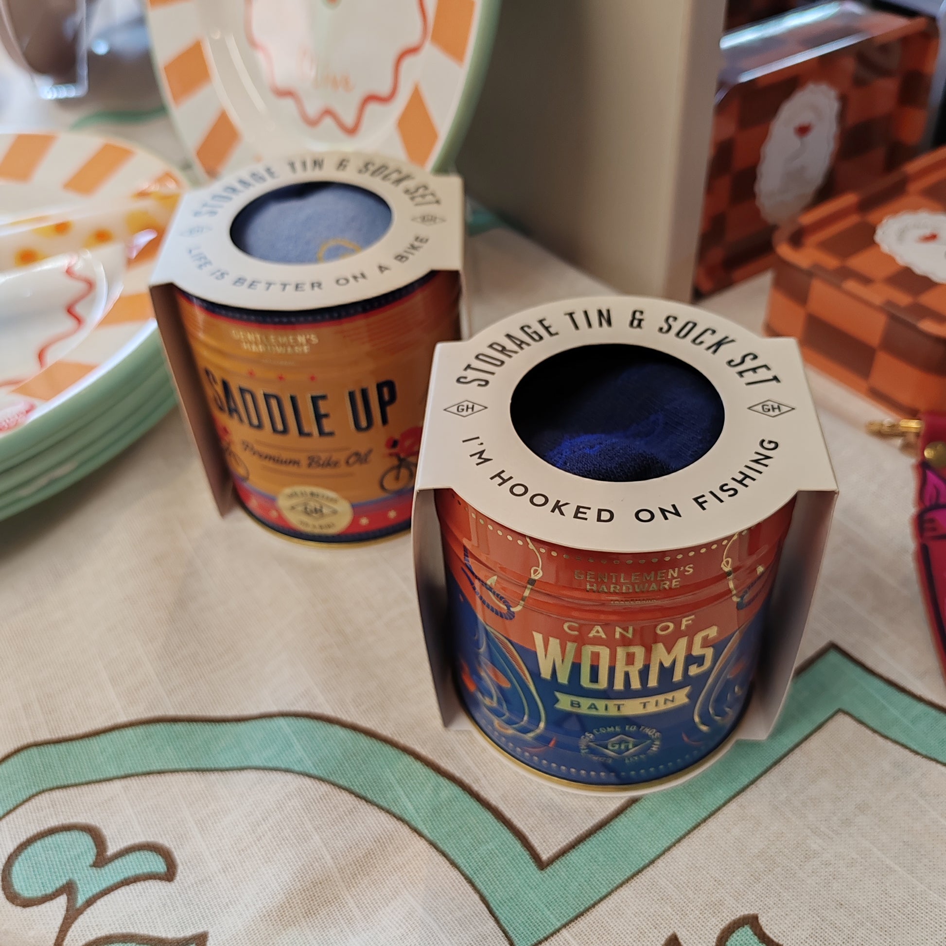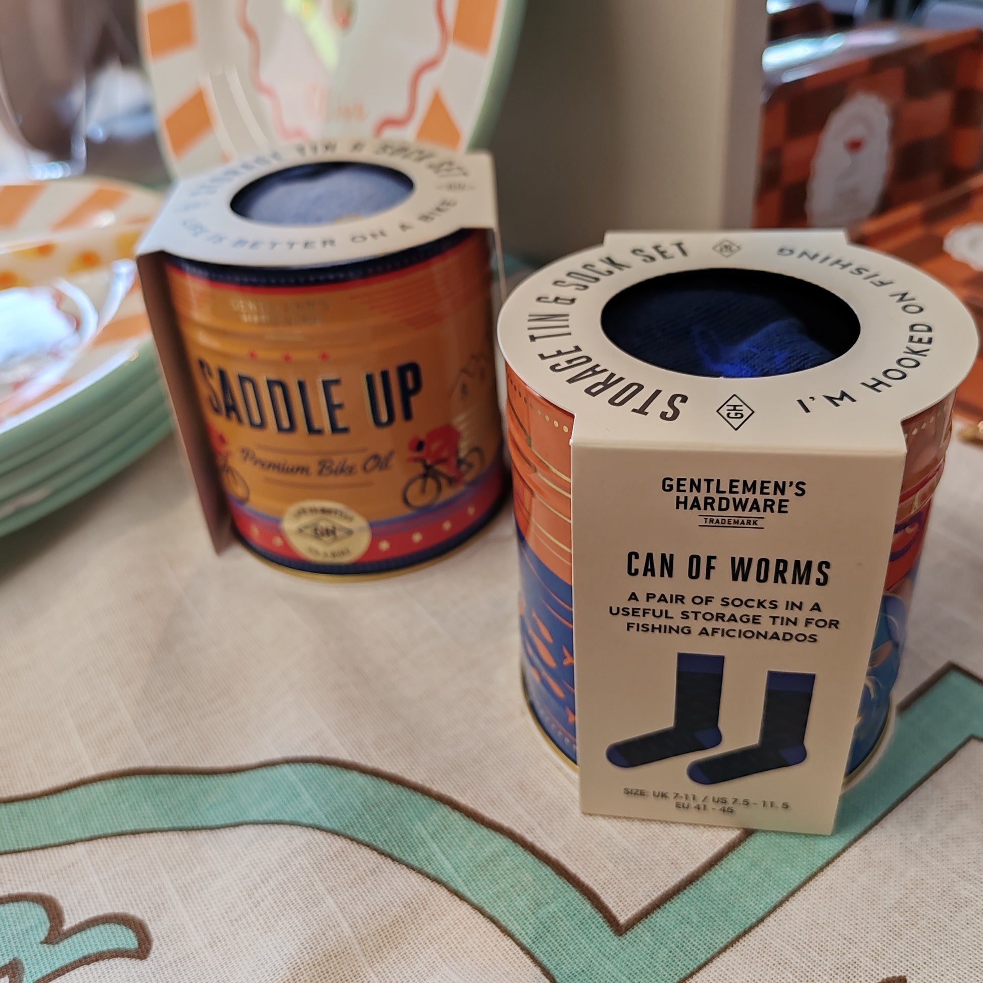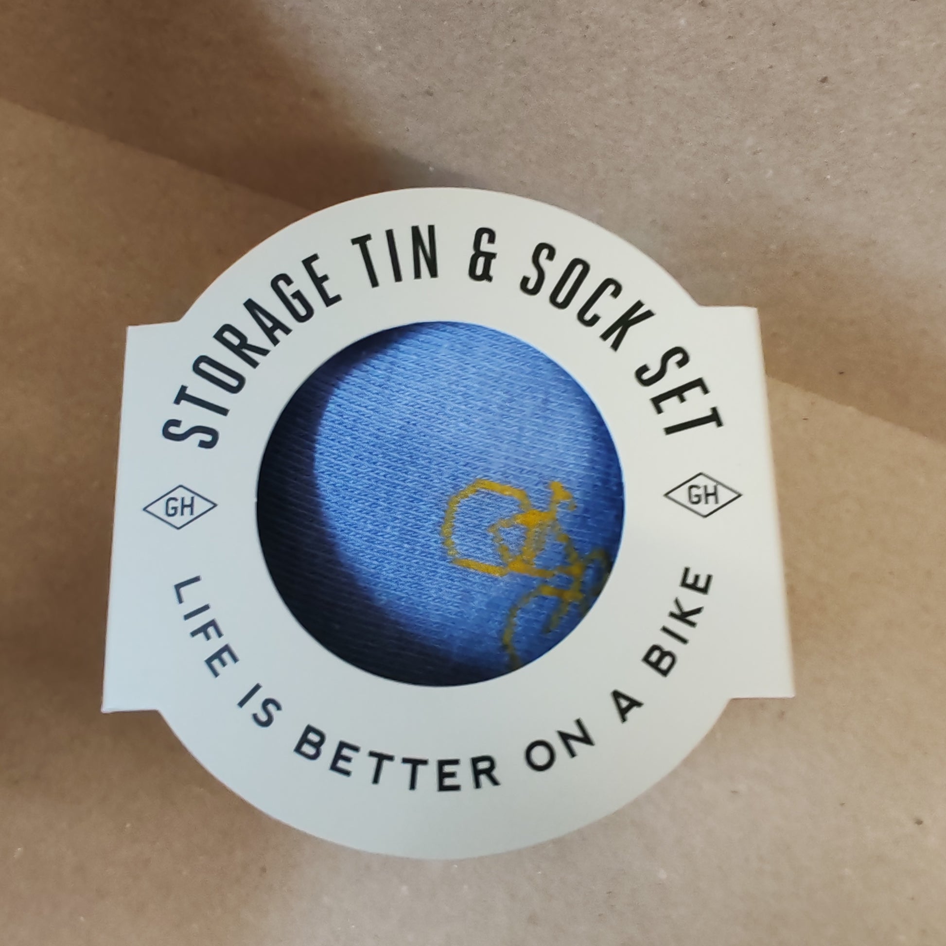 "Expertly crafted for the avid cyclist in your life, these socks come in a stylish tin container. The perfect gift for men, these socks feature a sleek bike theme and are sure to please any cycling enthusiast. Made with high quality materials, these socks offer both comfort and style."