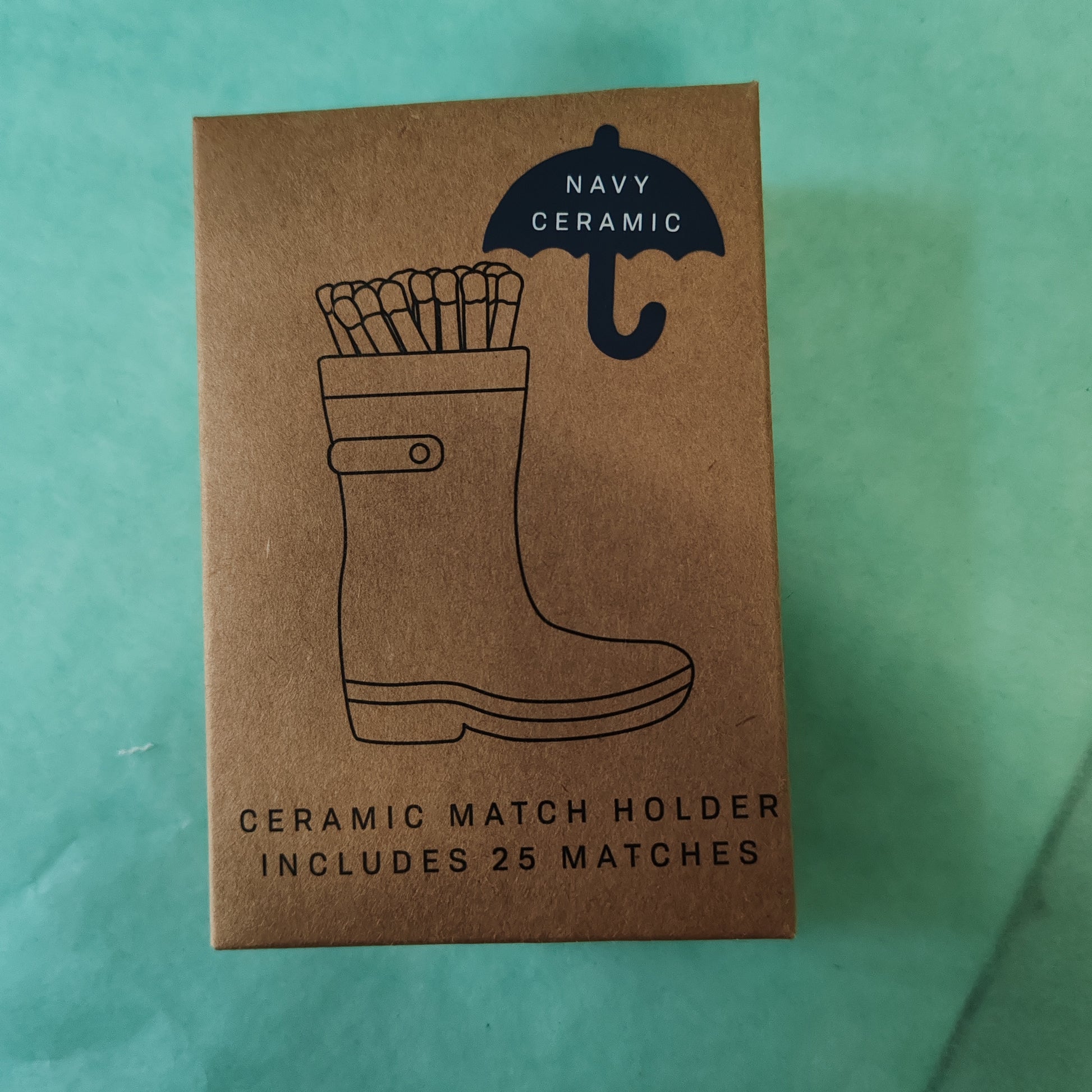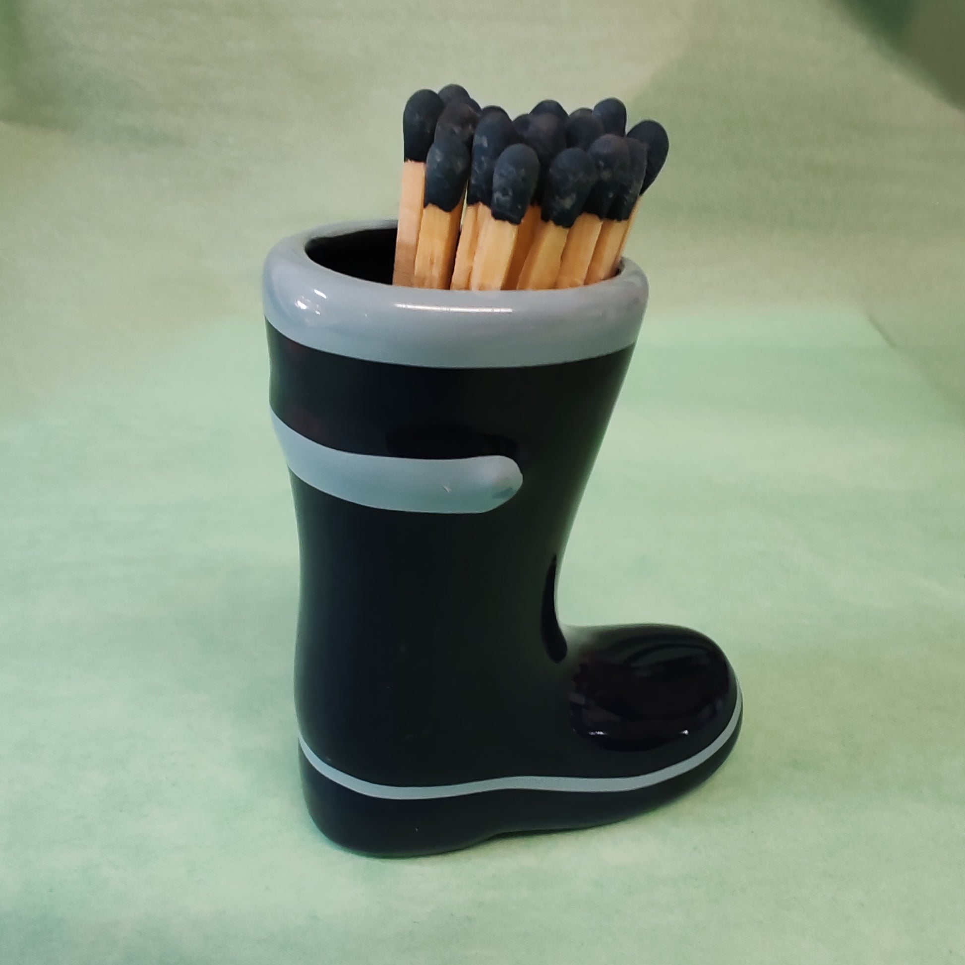 "Keep your matches stylishly stored in this cute ceramic wellington boot holder. With 25 included matches, you'll always be ready to light up a cozy fire. Perfect for any rainy day or chilly night in."