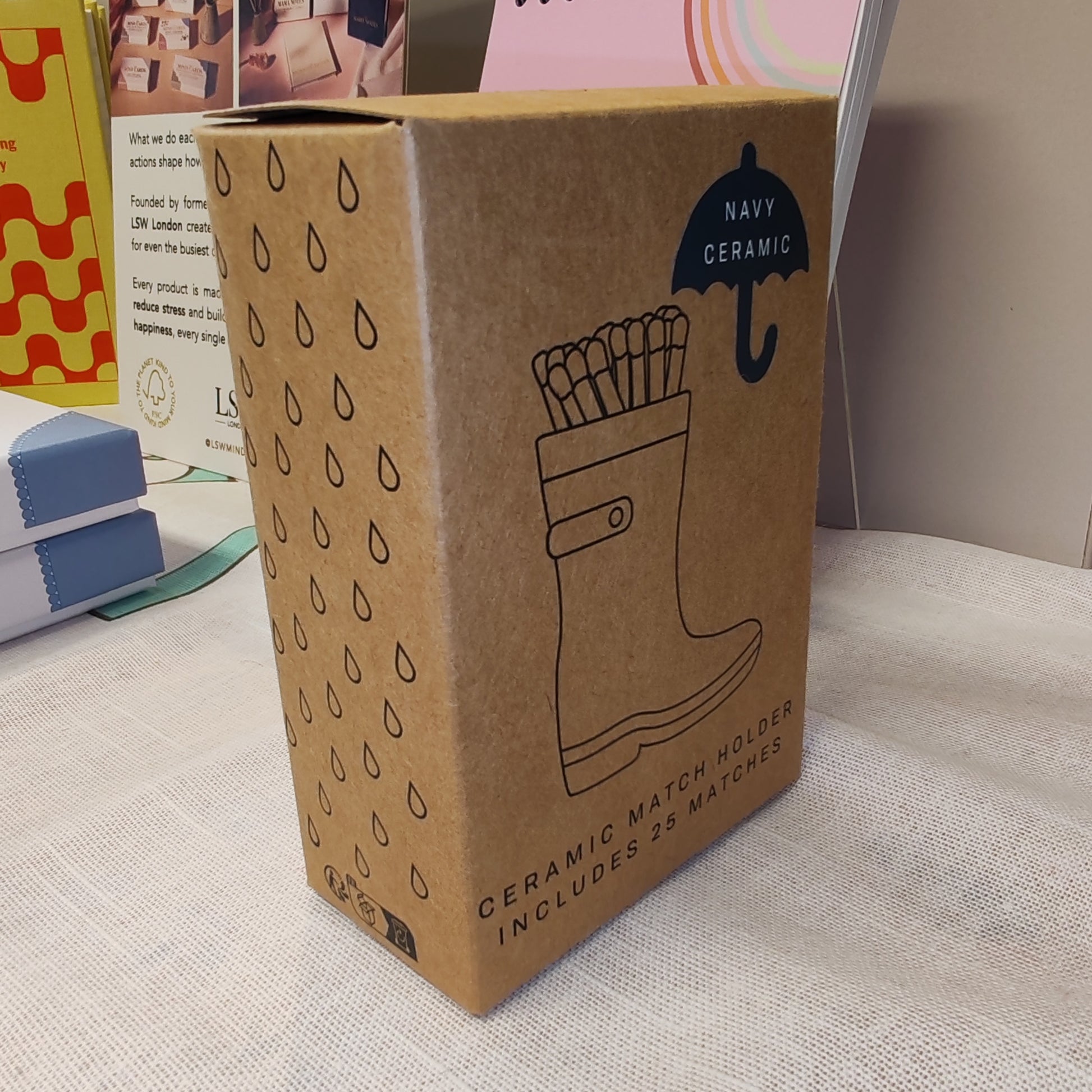 Wellington Boot Matches Holder with 25 Matches Navy Blue