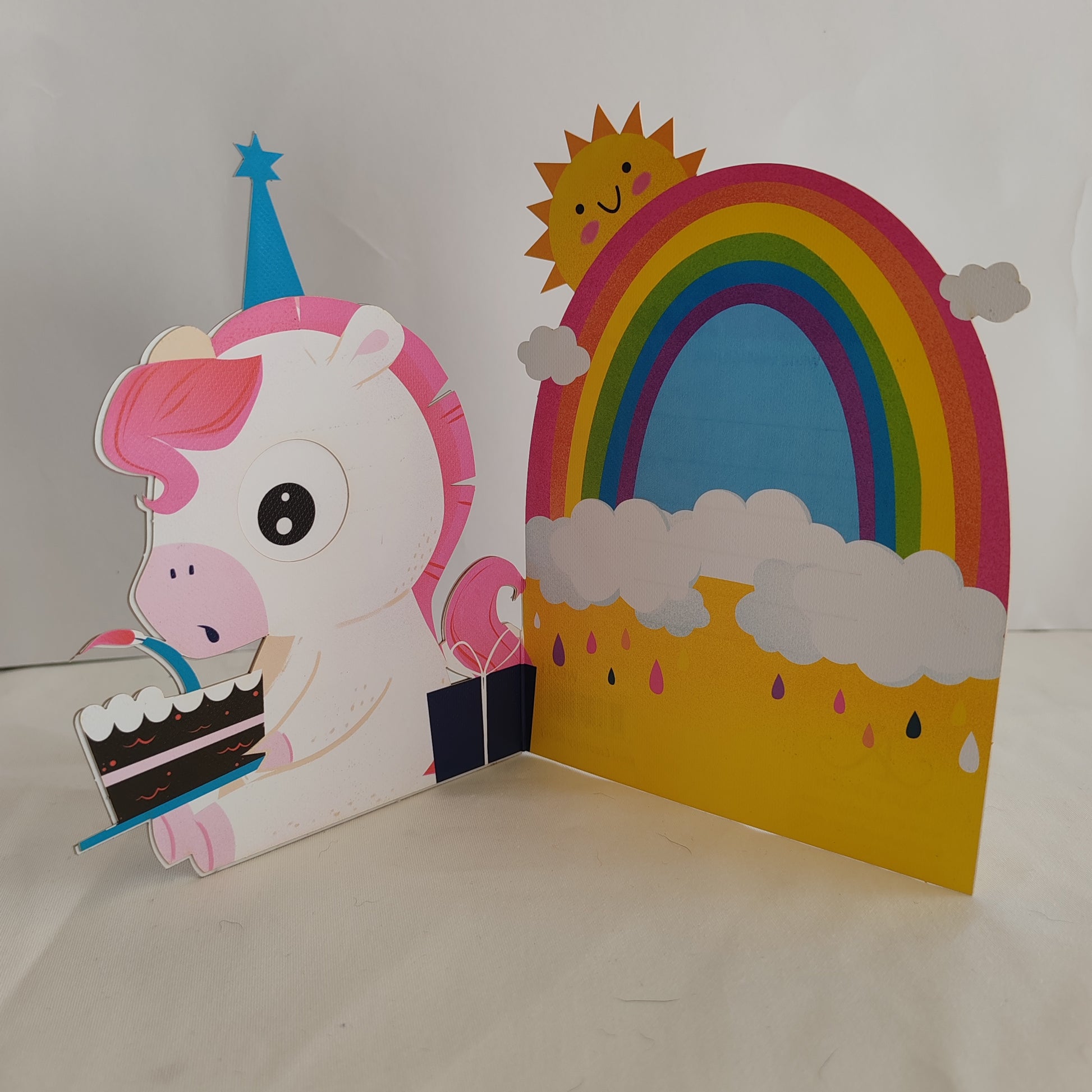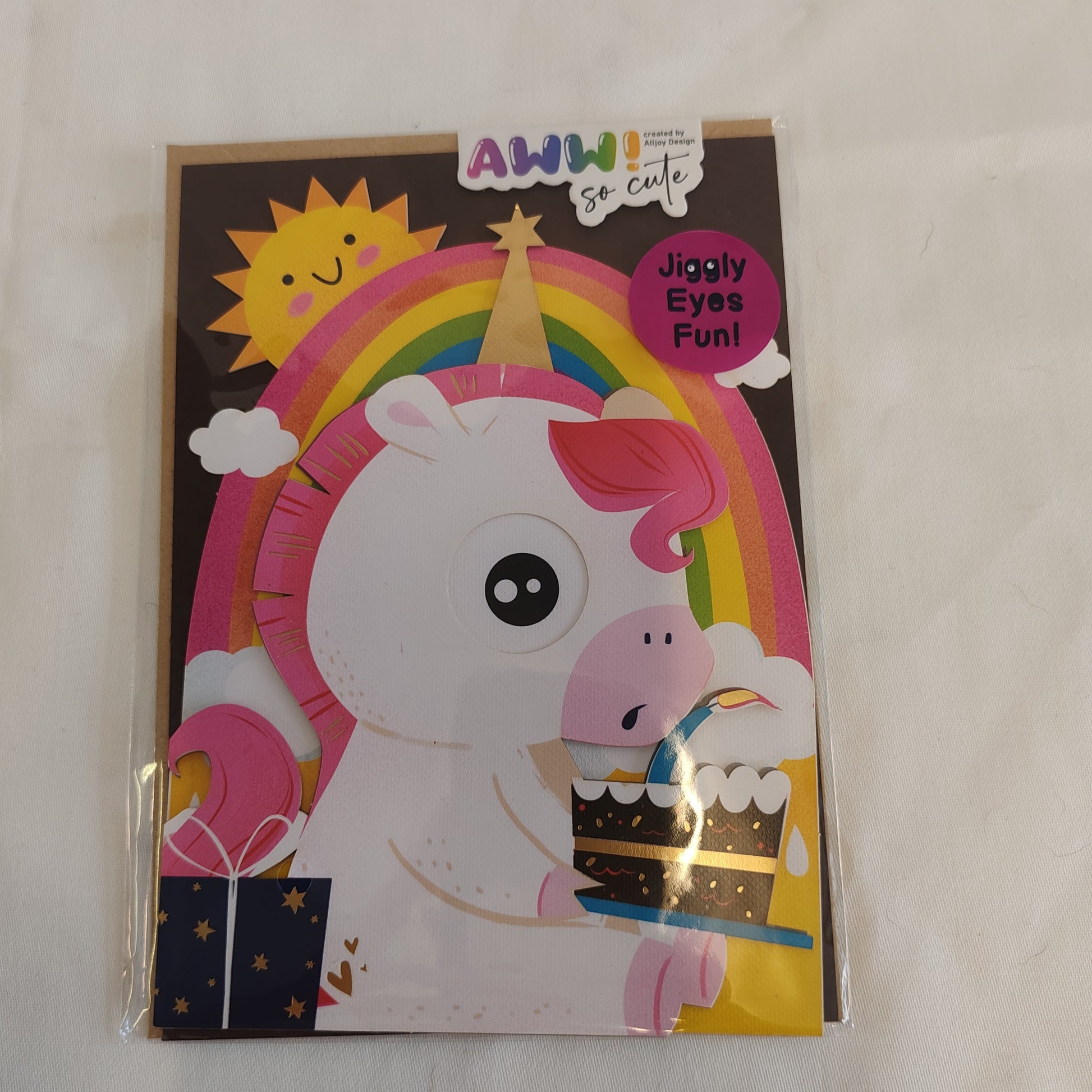 "Unleash the magic with our Wobbly Eyes Greeting Card featuring a pink rainbow unicorn! The wobbly eyes make this card a memorable and playful way to send your love and greetings. Perfect for any occasion or just because! (Not recommended for serious individuals 😉)"