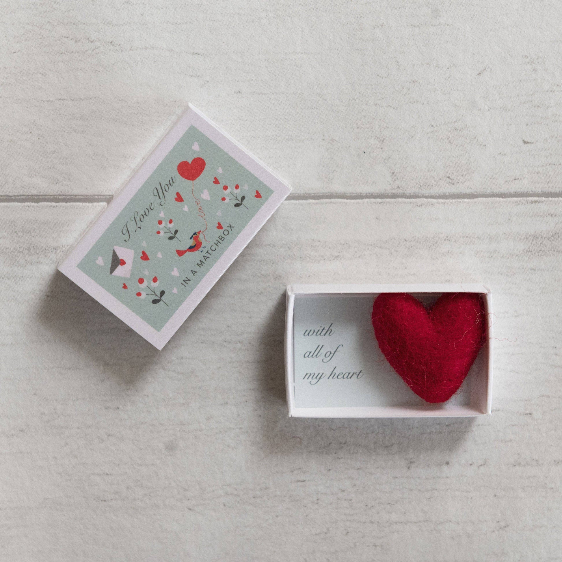 A beautiful way to show your love with this cute matchbox containing a miniature wool felt heart.